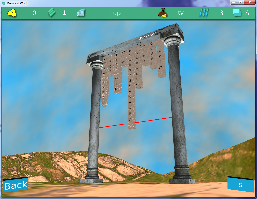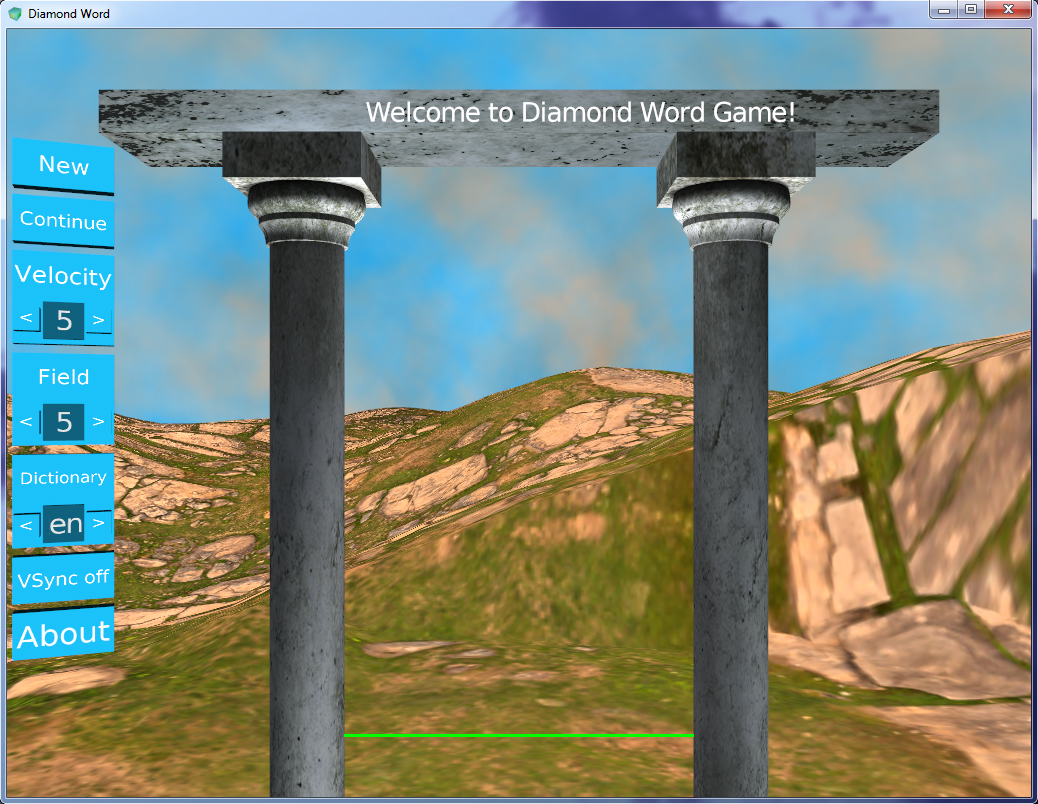 Diamond Word is a word game that will challenge your brain to its limits as you search for the right word or any word to clear the field and not give up in a matter of seconds. You control the letters flying upward, placing them in the right positions to form words. And if you're going to beat the game, you need to create specific words, called "diamond words." The game starts with a short word of just two letters and ends with a word of fourteen letters. The rules are simple: you create the right words, and the field clears, advancing you to the next level with an extended Diamond Word. The game allows the player to choose the speed of the upward-flying letters, as well as the field width, which affects the difficulty of the game. The difficulty is further enhanced by the fact that the letters appear randomly, and sometimes the right letter just takes its time to appear, or rather, to fly out. You need to somehow get out of this situation by creating any words you want, then erase them, clearing the field. Because if a letter lands on the fifteenth row, you lose. Of course, you don't have to start from the beginning. If you've managed to reach a higher level, you'll start from there. And although the game has a decent dictionary, you may find that not all words are highlighted, meaning that the word isn't in the dictionary. Diamond Word supports three languages: English, Russian, and German. Changing the dictionary in the game menu also changes the interface language. I tried to make the game as simple and intuitive as possible, making it accessible and engaging for a wide range of ages. The game also features a camera, allowing you to set the desired angle and zoom in or out.